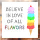 Fügen Sie etwas Wow! zu Ihrem Fenster und lass anderen sehen Sie Ihren Stolz und / oder Verbündeten mit diesem einzigartigen, Kopf drehenden und farbenfrohen Diversity + / schwul / lesbisch mit einem sehr hohen Eis-Kegel mit allen Farben des Regenbogens, zusammen mit dem Zitat "Glaube an die Liebe aller Aromen." *Toll für Unterstützung oder Stolz während Pride Month, aber perfekt Jahr! : )