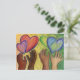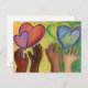 Inspirationskunst mit bunten Herzen mit unterschiedlichen Händen, die zur Liebe reichen. Passen Sie diesen Postkartendruck mit Ihren Texten oder Bildern an, um ihn zu einer personalisierten Liebe zu machen - zum Beispiel als Kunstkartendrucke oder Postkarten für jemanden, der etwas Besonderes ist!