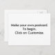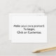 Entwerfen Sie Ihre eigenen Postkarten online. Klicken Sie auf Anpassen. Klicken Sie auf Bild hinzufügen, um ein Bild von Ihrem Computer hochzuladen. Sie können dann nach dem Hochladen auf das Bild klicken, um es zu verschieben und zu verkleinern. Sie können den Text löschen, der durch einen Rückstand im Textfeld angezeigt wird, oder einen neuen Text eingeben. Nach der Texteingabe können Sie den Schriftart (f) Stil, Größe und Farbe wählen. Vielen Dank, dass Sie CherylsArt auf Zazzle einkaufen.