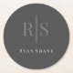 DIY Gray Monogram & White Name on Dark Gray Runder Pappuntersetzer