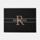 Personalisieren Sie diese trendige schwarze Türmatte mit Light Brown Monogram und White Name. Ein einfaches, aber elegantes Design mit 2 grauen Streifen.