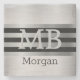 DIY Monogramm/Name Bk/Silber Streifen gebürstet Si Steinuntersetzer