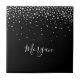Personalisieren Sie Ihren Namen in einem weißen Skript (oder einer Nachricht) mit weißen Diamanten, die von oben auf schwarzem Hintergrund fallen.