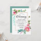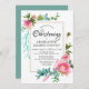Schöne rosa Aquarellbäume mit einer Touch Aprikosengold schmücken auf dieser eleganten Taufeinladung einen dünnen Goldrahmen. Es ist sehr einfach, den Beispieltext durch einen eigenen zu ersetzen. Die Weihnachtsfeier ist in einem großen, fließenden Text geschrieben. Der Rest des Textes ist ein klassischer Serif-Schriftart. Die Rückseite der Einladung ist aquamarin blau.