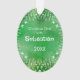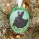Name on one side with the words "Christmas Time with". Your bunny's photo appears in a Green ring with white Christmas designs drawn in white chalk.