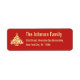 Maßgeschneidertes, personalisiertes, festliches Rot und Imitate Gold, Weihnachtsbaum, Weihnachtsfeiertagssaison kehren Adresse Label. Geben Sie einfach den Familiennamen / Braut & Bräutigam / Ehefrau & Ehemann Namen, und Adresse, um sich anzupassen.