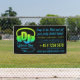 DJ Werbebanner in schwarz mit blau bis hell kalk grün. Personalisieren Sie Ihre eigenen DJ-Geschäftsdetails. Gut, um die Öffentlichkeit zu sensibilisieren und neue Geschäfte zu machen. Original Grafikdesign von Sarah Trett für www.mylittleeden.com auf Zazzle.