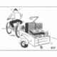 Funny DJ Aufkleber. Für den mobilen DJ. Disc Jockey auf einem Zyklus mit einem Trailer mit seinen Plattenspielern und Turntable. Mobile Disco Cartoon.