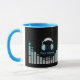 Lassen Sie Ihren Drink als Musik beruflich. Deejay eqalizer Music Tech Play Cover. Einfache Musterabdeckung mit Ihrem Namen. Tasse Kaffee oder Tee oder etwas Anderes. Hellblaue Kopfhörer-Edition. Coole Kombination von Blau und Schwarz.