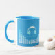 Lassen Sie Ihren Drink als Musik beruflich. Deejay eqalizer Music Tech Play Cover. Einfache Musterabdeckung mit Ihrem Namen. Tasse Kaffee oder Tee oder etwas Anderes. Hellblaue Kopfhörer-Edition. Cooler heller Himmel blau.