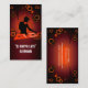 Diese DJ-Geschäftskarte kennzeichnet ein reiches Rot und Burgunder-Farbhintergrund mit roten Strahlnspitzen, DJ, das Silhouette oben mischt, klingt auf einer Drehungstabelle.