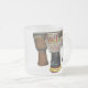Diese Tasse hat 3 djembe Trommeln auf einer Seite und einem Trommelentwurf mit Benennung auf der anderen Seite. Die Benennung ist der alte stehende Witz innerhalb der Trommel-/Tanzkreise "des Bergwerkes ist größer".