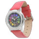 Kinderuhr aus Edelstahl mit rotem Lederarmband