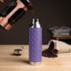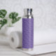 Lila, diagonale Streifen in Form der Doppelhelix der DNA streak durch einen dunkleren lila Hintergrund und schaffen ein hübsches, subtiles Muster für jeden Biologen, Genetiker oder anderen Teilnehmer oder Fan von STEM Feldern. Passen Sie das Monogramm mit Ihrem Initial an, um eine Wasserflasche zu erstellen, die einzigartig für Sie ist.