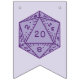 Feiern Sie einen besonderen Geburtstag mit diesem Banner zum Thema D&D. Es hat die Worte "Happy Birthday" und d20 Würfel Dekoration in einem lila Thema.