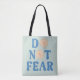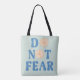 Tote bag with Do Not Fear on it in peaceful colors and flowers.