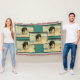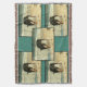Digitales Gemälde eines wunderschönen Doberman Pinscher, der am Strand fröllt, während die Meereswellen am Ufer aufgehen und im Sand Pfotendrucke verlasse.