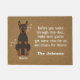 Willkommen Doberman Türmatte mit lustigen Doberman Doberman Hundematte Illustrationen. Anpassbare Doberman Hundeschormatte. Auf dieser Doberman-Hundematte können Sie Ihren Familiennamen und die Namen Ihres Doberman-Hundes angeben. Mit dieser Doberman Türmatte können Sie auch die Farbe der Doberman-Hundentürmatte ändern. Der Doberman Hund ist ein Familienmitglied. Wir Liebe Doberman Hunde, und du? Brauchen Sie ein anderes Hundeschema in Ihrer Hundentürmatte? Kontaktieren Sie uns und wir werden eine neue Hundentürmatte auf zazzle teilen. Wir können all die Hundetürmatte erstellen, die Sie brauchen