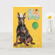 Doberman Dog Party Hat Yellow Birthday Karte