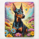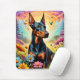 Doberman Hund, Blume und Bergwelt Mousepad