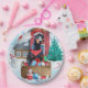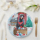 Eine perfekte Weihnachtsgeschenkidee für Hundefreunde, ein niedlicher Hund, der neben Weihnachtsbaum und Hundehaus im Schnee sitzt, ist ein Muss für Sie oder Ihre Freunde zu Weihnachten.