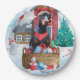 Doberman Hund im Schnee Weihnachtshundehaus Pappteller