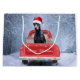 Ein Weihnachtswagen, der durch den Schnee fuhr und Weihnachtsgeschenke und Doberman Hund lieferte. Eine perfekte Weihnachtsgeschenkidee für jemanden, der diesen Hund züchtet.