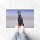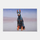 Ein niedlicher Doberman Hund sitzend mit farbenprächtigem Hintergrund, eine Geschenkidee für jemanden, der diesen Hund züchtet.