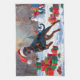 Doberman läuft im Schnee mit Weihnachtshut Geschirrtuch