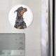 Runde Magnet wählen Sie die Größe. Rettung Doberman gibt einen verschneiten Blick über den Fotografen fragend für eine Leckerei, um hübsch zu sitzen. Original Copyright Foto von Deb Simon Fotografie.