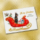 Auf dieser Urlaubskarte sitzt ein Doberman Pinscher Hund in einem hübschen Rot- und Goldschmuck. Neben dem Hund sitzen Geschenkpackungen mit bunten Bögen, und hinter dem Schlitten ist heilig mit roten Beeren. Im goldenen Text rechts steht "MERRY CHRISTMAS" und Ihr eigener Text ist grün. Der gesamte Text, innen und außen, kann leicht auf alles geändert werden, was man möchte. Im Dog Village können Sie mehr Bilder und Produkte der Hundezucht sehen.