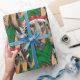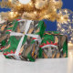 Ein bezaubernd modischer Doberman Hund in einem niedlichen Elfenhut und einem grünen Winterschal ist auf diesem lustigen Geschenkpapier für Liebhaber von Haustieren gemustert.