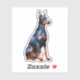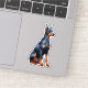 Schöner Doberman Pinscher sitzt schwarz und braun.