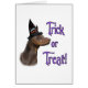 Wird es dieses Halloween Tricks oder Treats sein? In unserem Urlaubsdesign tragen Sie Ihren Lieblingshunde, den Doberman Pinscher, mit einem Hexenhut. Fügen Sie ein wenig 'Hocus Pocus' zu All Hallows' Eva in diesem Jahr hinzu!