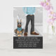Ein so echter und stilvoller Hundebegleiter auf dieser Vatertagskarte für den Haustiervater, der seinen Doberman Pinscher Liebe. Eine Illustration von Mensch und bester Freund in passender Kleidung.