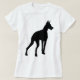 Eine schwarze Silhouette eines Doberman Pinscher auf weißem Hintergrund.