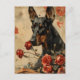 Mit dieser Vintagen Postkarte, die einen eleganten und gemütlichen Doberman mit zarten Rose und Herzen beherbergt, können Sie das Wesen der Nostalgie erfassen. Das sepiatfarbene Bild strahlt zeitlose Wärme aus und ruft ein Gefühl von Liebe und Freundschaft hervor. Das starke und schützende Benehmen des Doberman wird durch die weiche, blumengeschmückte Kulisse wunderschön ergänzt, was ihn zu einem herzzerwärmenden Sake für Hundefreunde und Vintage Liebhaber macht.