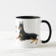 Ursprünglicher Entwurf der feinen Kunst der DobermannPinscherhunde durch Designer Carolyn McFann zwei des schnurrenden Katzen-Studios auf einer kundengerechten Tasse für Dobermann lockert auf.