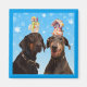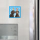 Zwei niedliche Dobermans balancieren Weihnachtsschmuck auf den Köpfen, um auf Ihrem Kühlschrank oder anderen Metallplatz zu platzieren. Dieses Bild ist auf anderen Produkten in meinem Zazzle-Shop erhältlich.