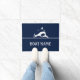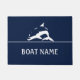 Dockmat mit Bild eines Delfins. Fügen Sie einen benutzerdefinierten Bootsnamen oder eine benutzerdefinierte Nachricht hinzu.