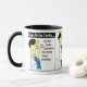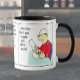 Fun Docker Versand Container Cartoon Spaß für einen Docker oder für jeden, der in der Schifffahrt, der Handelsmarine oder dem Transport von Containergütern auf See arbeitet. Der im Docks-Cartoon genannte Container ist eine "Lunch Box"! Cartoon des Containerkranbetreibers, Seefrachtmanagement. Der lustige Cartoon zeigt einen Hafenarbeiter, der mit dem Laden und Löschen von Containern von Containerschiffen arbeitet. Zwei Töne Tasse mit Farbgriff.