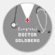 Geschenksticker, Gastgeschenk-Etiketten oder Umschlag Aufkleber mit einzigartigen grauen Hospital-Skulpturen und Stethoskop für kreative Abschluss. So passen Sie Text an, um den Namen des Arztes hinzuzufügen.
