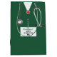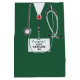 Kreative medizinische Geschenktasche mit grünen Krankenhausdüsen. So personalisieren Sie die Bearbeitung Text, um den Namen des Arztes oder Arztes hinzuzufügen.