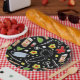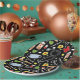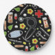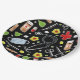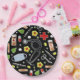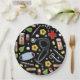Teller der Creative Doctor Event oder Medical School Graduation Party mit Gesundheitsvorräten und Blume-Muster auf schwarzem Hintergrund.