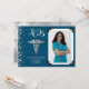 Feiern Sie den neuen Doktor der Medizin mit dieser silberblauen und marineblauen Ankündigung des Abschlusses von Caduceus an der Medizinschule! Elegant mit Vintagem Foto und silberfarbenen Konfetti-Akzenten! Perfekt für alle, die als Master geschlossen sind oder mit Doktorand arbeiten!