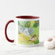 Eine Tasse mit einer wunderschönen Waldszene, inklusive Taube und Fawn, die von einem Bach in der Nähe eines Wasserfalls trinken. Original-Kunstwerk von W.B.