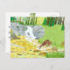 Eine Postkarte mit einer wunderschönen Waldszene inklusive Taube und Fawn Trinken aus einem Bach in der Nähe eines Wasserfalls. Das Bild kann vergrößert und/oder neu positioniert werden. Original-Kunstwerk von W.B.
