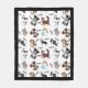 Cute Dogs scattered on a white background with the word "woof" dotted about in between pattern fleece blanket.
