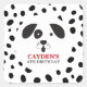 Hunde Geburtstagsaufkleber mit schwarzen Dalmatiner Flecken.