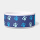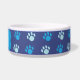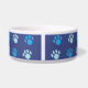 Ein perfekter Hundeknochen & Pfoten druckt personalisierte Haustierschüssel für Ihren Hundebegleiter. Passen Sie auf, Ihren Hundenamen auf diese Schüssel zu schreiben, um einen guten Sake zu erhalten und Ihren Hund für eine lange Zeit zu genießen. Die Schüssel ist in verschiedenen Blautönen gehalten.